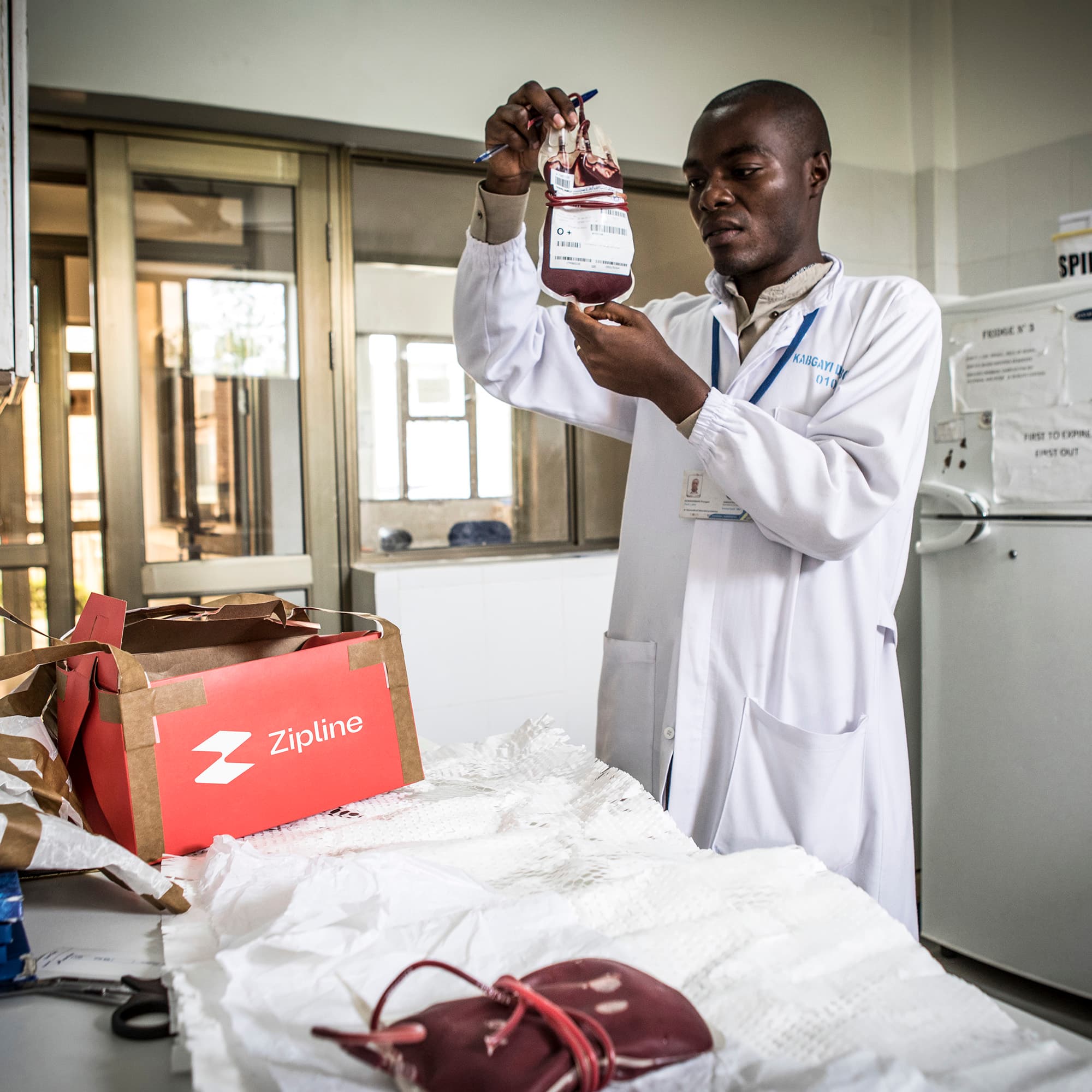 Today, Zipline delivers blood, platelets, fresh-frozen plasma, and a plasma component called cryoprecipitate to clinical staff caring for laboring mothers at all hours of the day, within an hour of the order being placed.