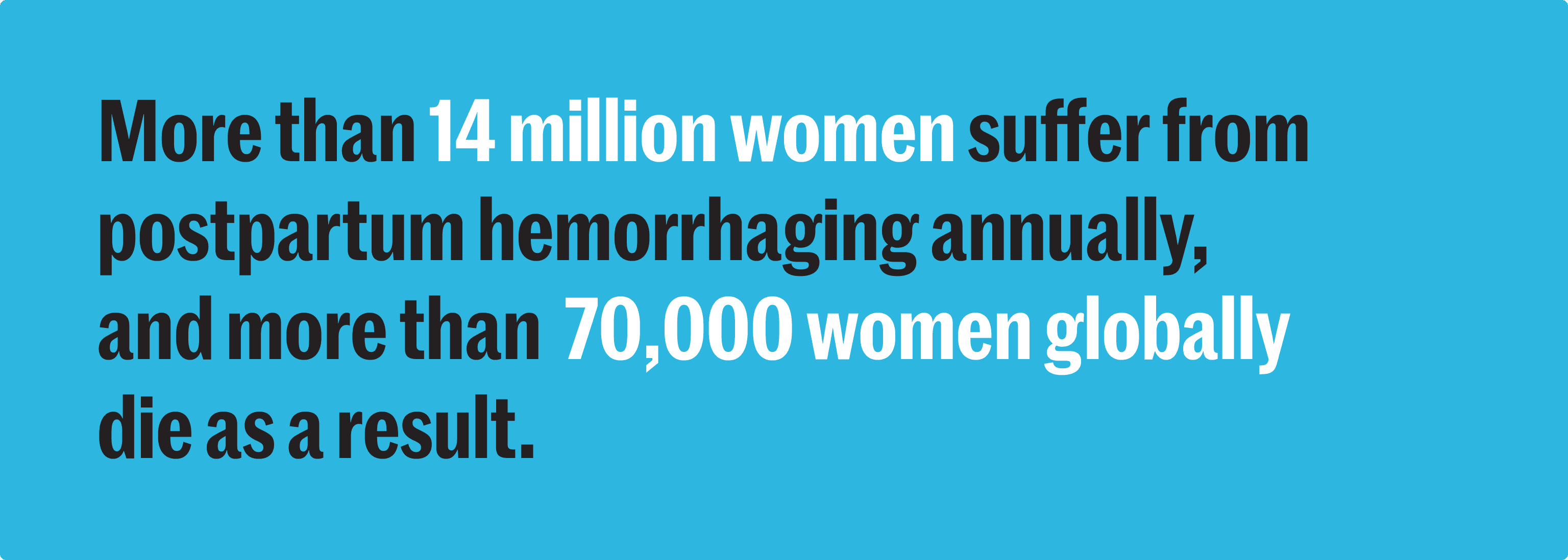 Every year, more than 70,000 women die from postpartum hemorrhage, or PPH,1 which is the leading cause of maternal death in the world. More than 14 million women suffer from PPH annually. Survivors have a greater-than-average risk of health complications such as post-traumatic stress disorder and cardiovascular disease.