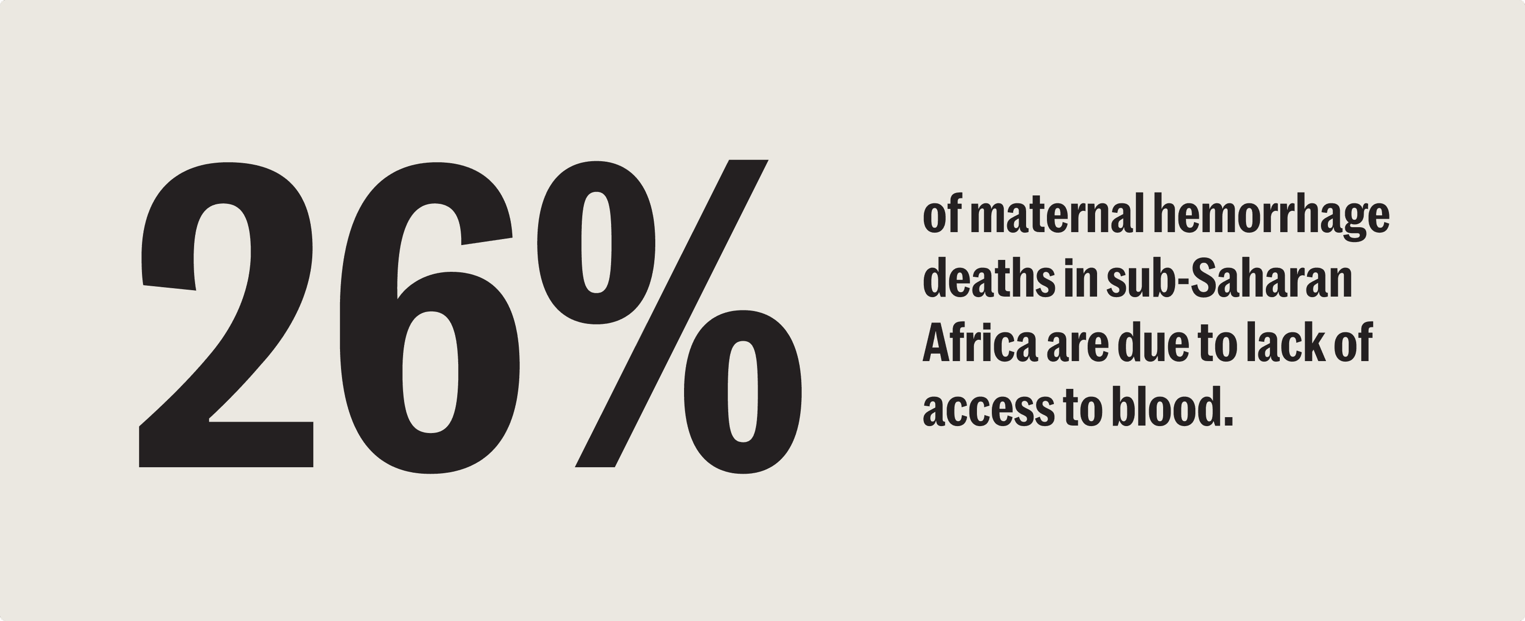 In sub-Saharan Africa, 26% of maternal hemorrhage deaths2 are due to lack of access to blood. In Rwanda where Zipline operates, PPH causes nearly a quarter of documented maternal deaths.3