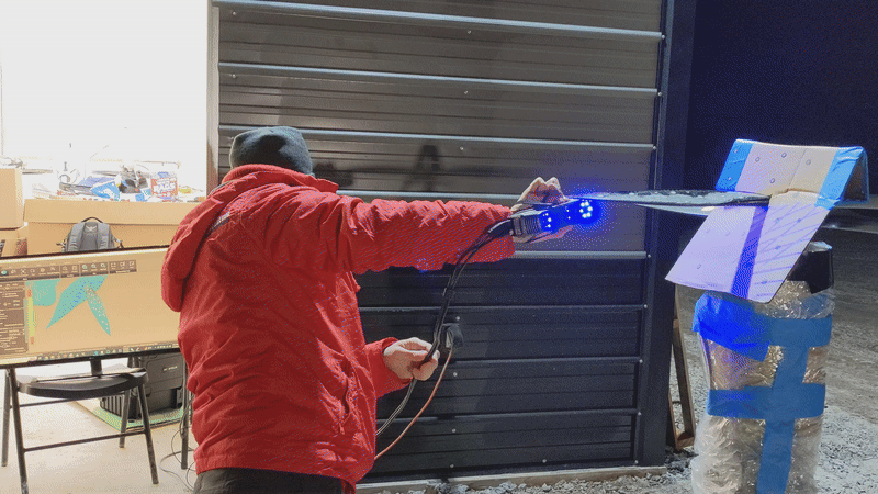 Fujiwara performing a 3-D scan of the propeller ice buildup after a cold-weather test in the middle of the night.