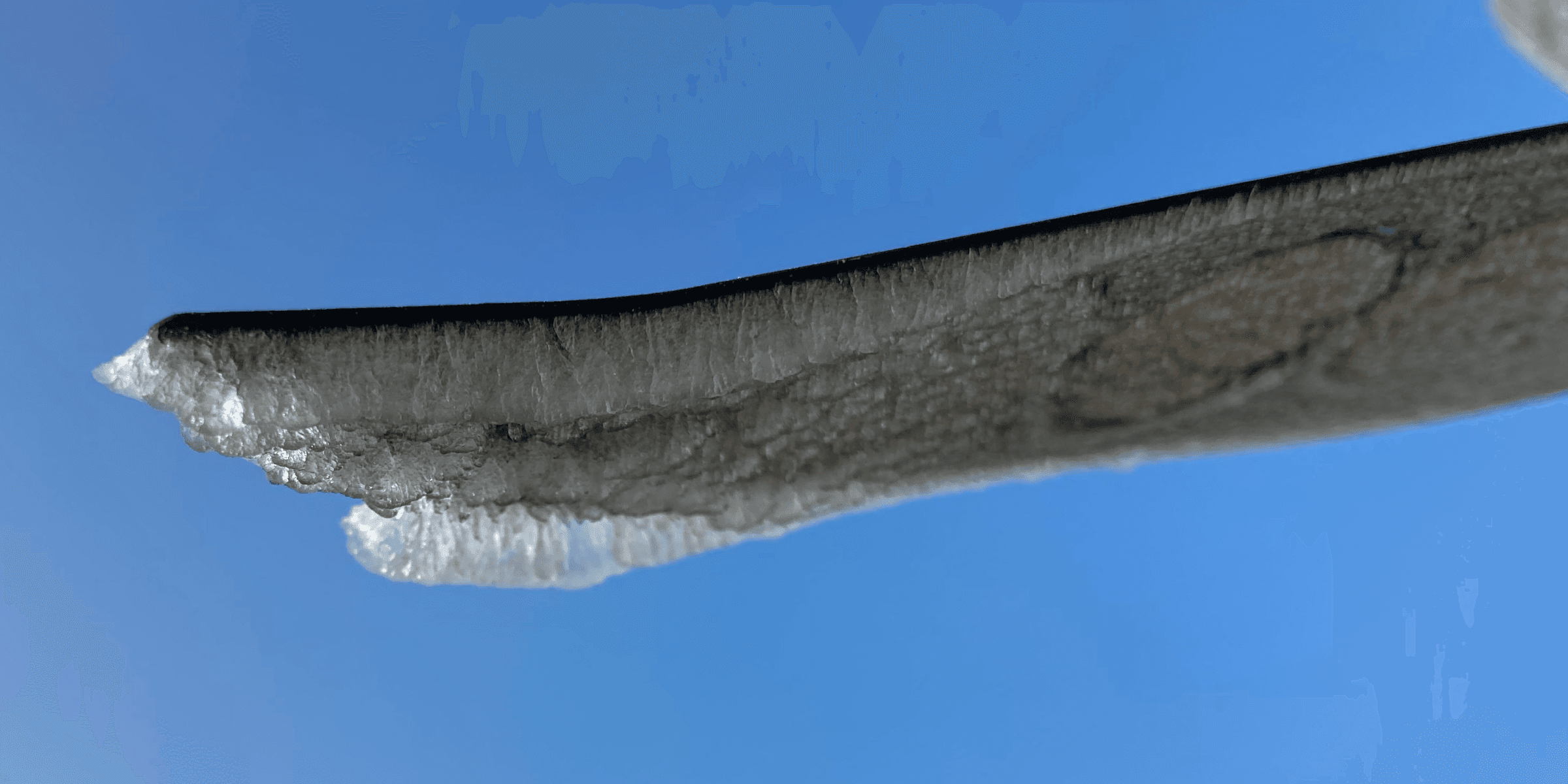 Fluctuating temperatures also exacerbated the effect of icing. In very cold temperatures, ice tends to form in a pattern that extends the leading edges of aircraft parts such as the propellers, the nose cone, and the front of the blade of the wing. But in temperatures closer to the freezing point, ice can form large horn structures that have a more detrimental effect on aerodynamics, make the motors work harder to compensate for irregular, jagged shapes.