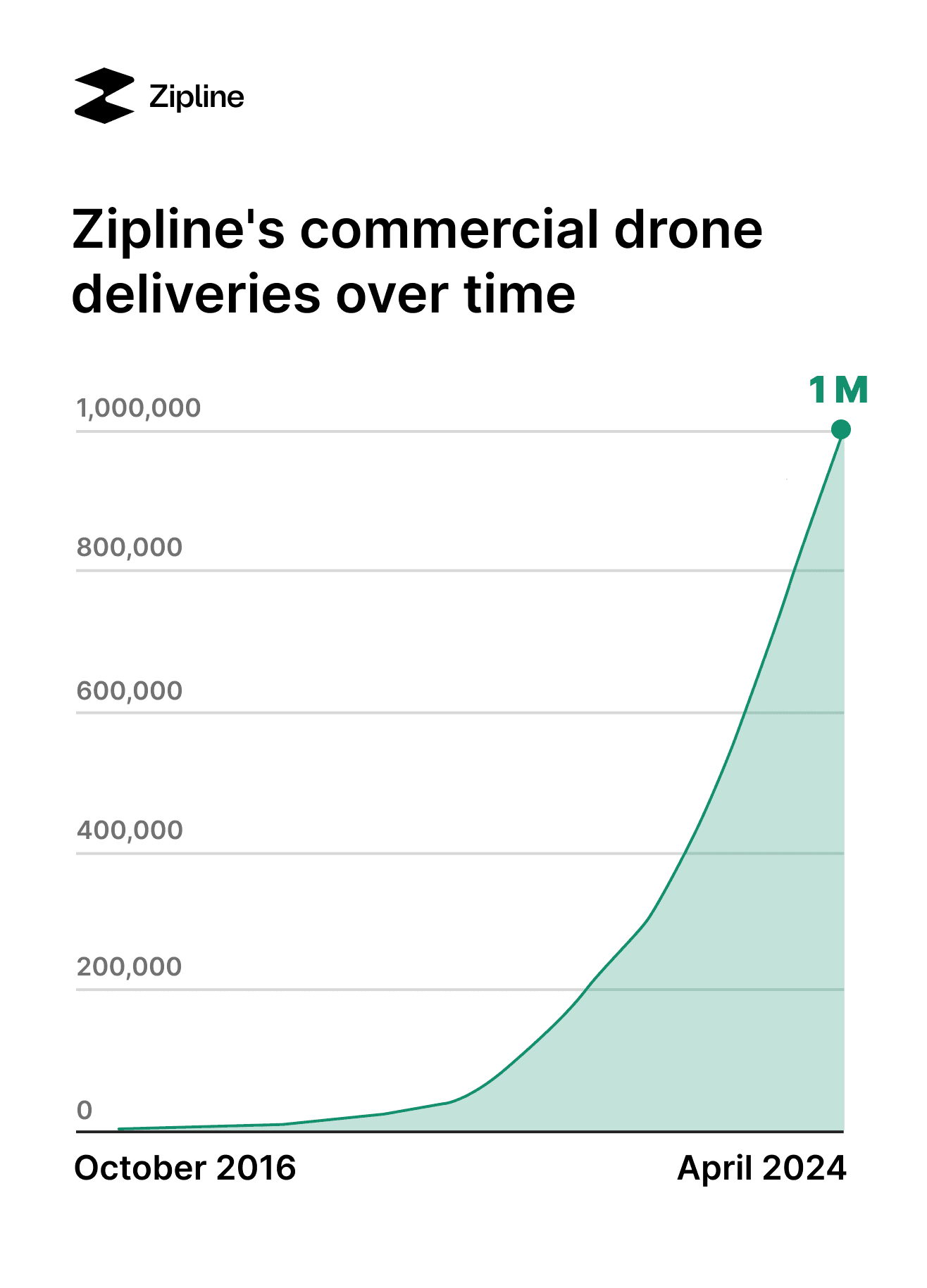 These 1 million deliveries have mattered. They represent a massive amount of work from everyone at Zipline. Soon, that number will be unremarkable as we reach a million deliveries in a year, in a month, in a day. And before long, clean, reliable autonomous delivery will be available to even you.